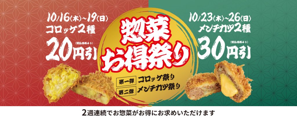 その名も「惣菜お得祭り」です。福のからの商品開発部が構想から長い時間をかけて開発した自慢のお惣菜をぜひ今秋お楽しみください!